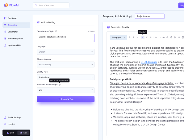 Davinci can help you with a variety of writing tasks, from writing blog post, creating better resumes and job descriptions to composing emails and social media content, and many more. With 70+ templates, we can save you time and improve your writing skills.